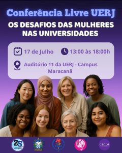 Convidamos vocês para a Conferência Livre UERJ com o tema “OS DESAFIOS DAS MULHERES NAS UNIVERSIDADES” Local: CAMPUS MARACANÃ DA UERJAUDITÓRIO 11BLOCO F – 1º ANDAR “Horário: 13 AS 18h A Conferência Livre de mulheres da Uerj tem como objetivo…
