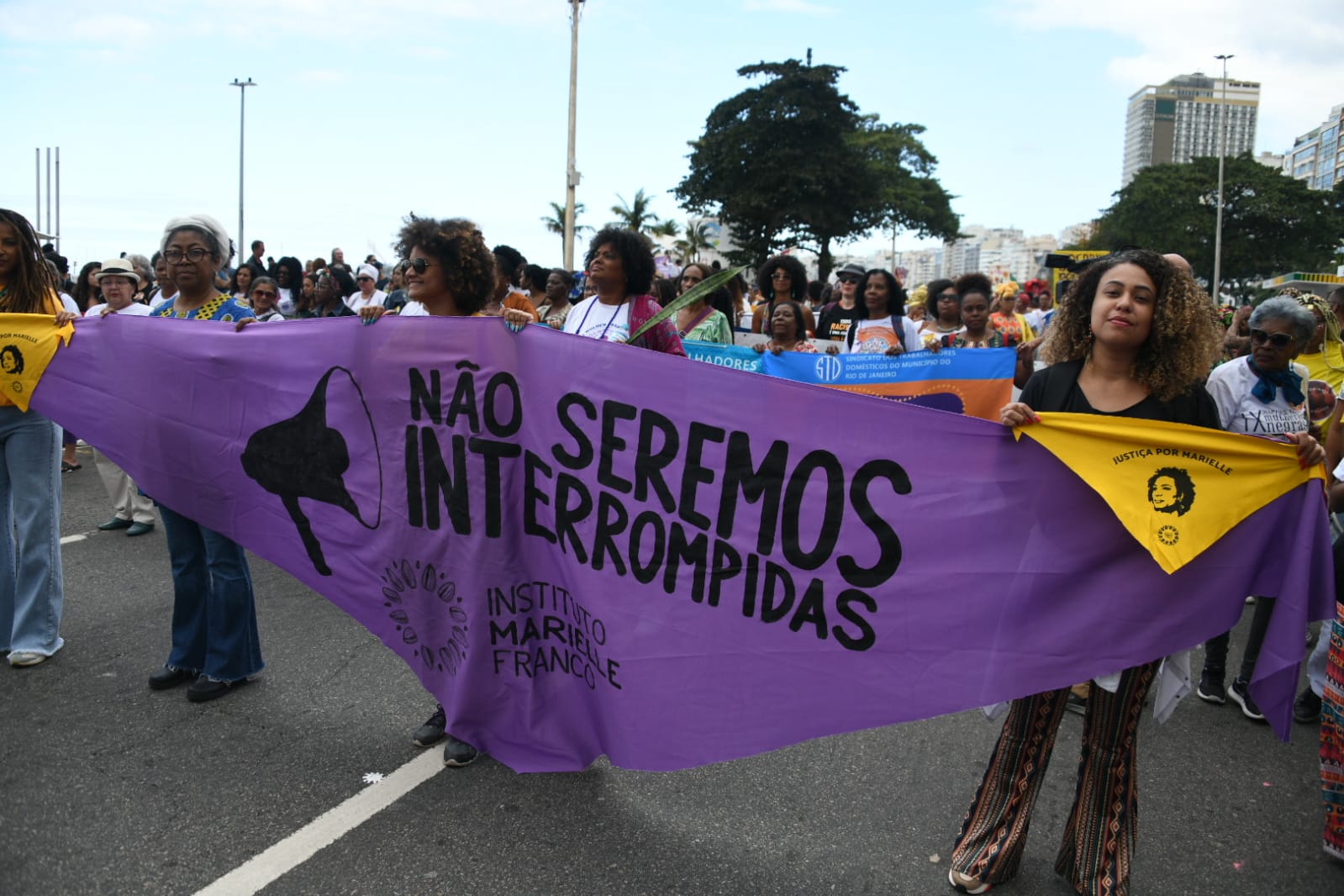 A IX Marcha das Mulheres Negras levou manifestantes à orla de Copacabana, no último domingo (30/07). Organizada pelo Fórum Estadual de Mulheres Negras – RJ e com o lema “Mulheres Negras Unidas contra o Racismo, Toda Forma de Opressão, Violência e pelo Bem Viver”, a manifestação encerrou a semana de mobilizações pelo Dia Internacional da Mulher Negra Latino-Americana e Caribenha (25/07).