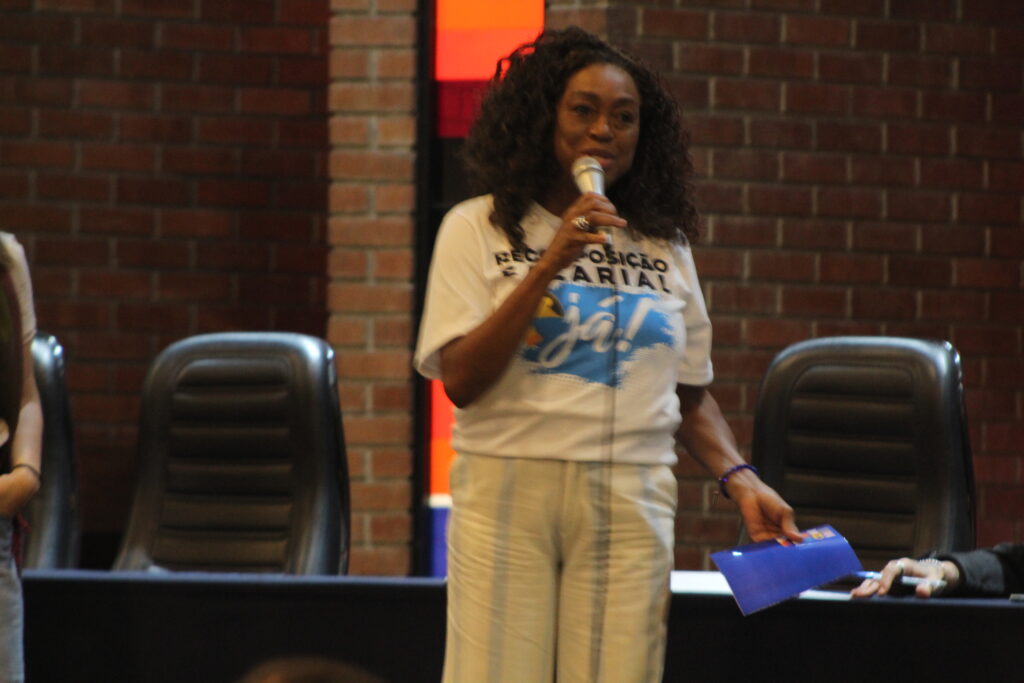 Regina fez a apresentação do sindicato que representa todos os trabalhadores das universidades públicas estaduais fluminenses. Ela ressaltou a importância de os servidores se sindicalizarem e fortalecerem politicamente o sindicato e os próprios trabalhadores.