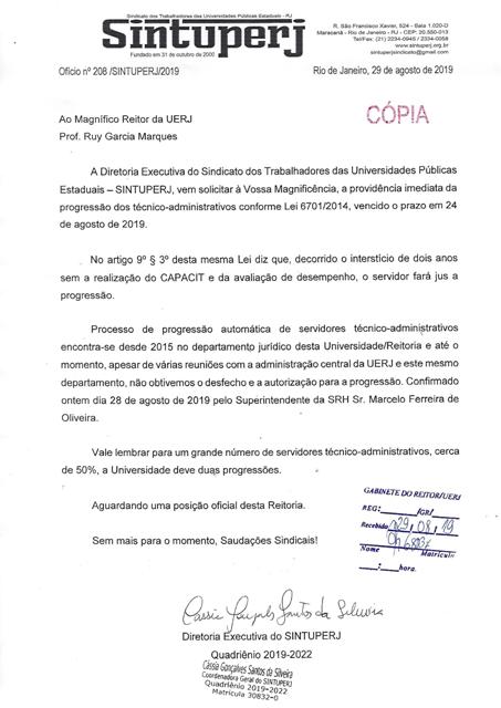 Após o ato, a Diretoria Executiva do Sintuperj encaminhou à Reitoria da Uerj ofício reivindicando a providência imediata da progressão dos técnicos.