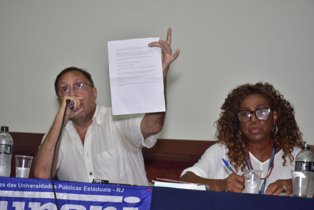A Assembleia ainda contou com o apoio do servidor técnico e diretor do Sintufrj, Luciano Batista, que levou uma saudação à categoria técnico-administrativa da Uerj.