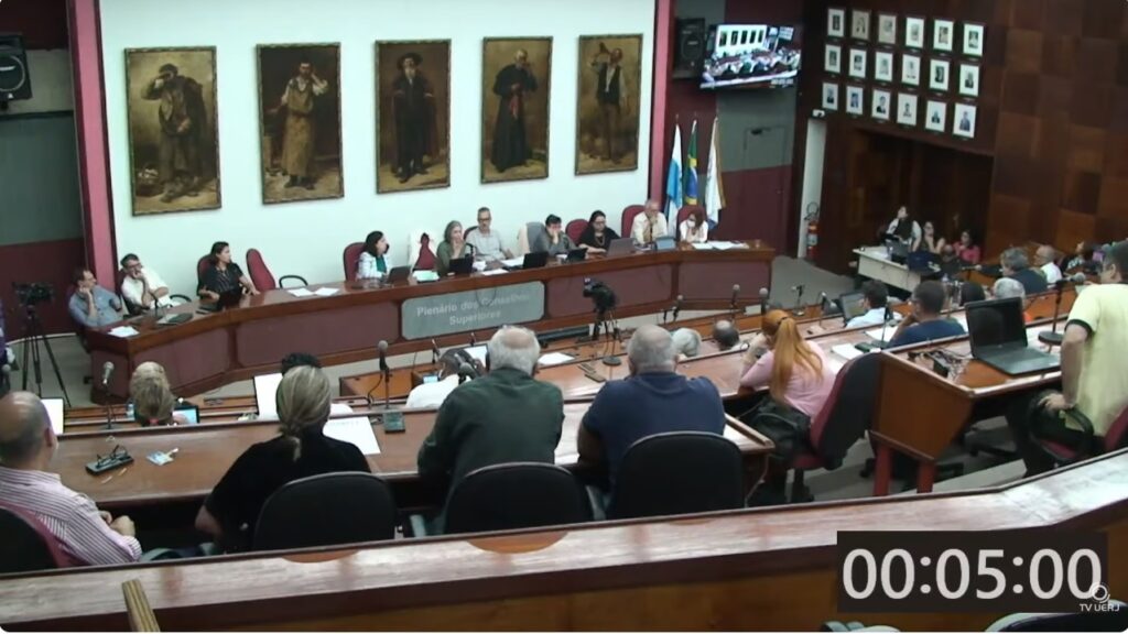 O Conselho Universitário (Consun) da Uerj deu continuidade a 10ª sessão ordinária, iniciada no último dia 07/11. A maior parte do da sessão foi dedicada ao debate da proposta de alteração da resolução que trata do Regimento Interno do Consun, cuja relatoria foi lida na sessão anterior.