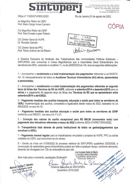29.08.2022 – Ofício 119 – Deliberações da Assembleia de 29.08.2022