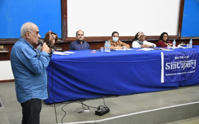 A também coordenadora geral Regina Souza fez uma fala de saudação inicial, apontando que o Sintuperj segue cobrando os direitos que foram prometidos e até agora não efetivados. Regina apontou que o sindicato não é um órgão administrativo dentro da universidade, que pode resolver as questões necessárias para garantir os direitos da categoria, mas um órgão político que tem o papel de fazer as cobranças necessárias