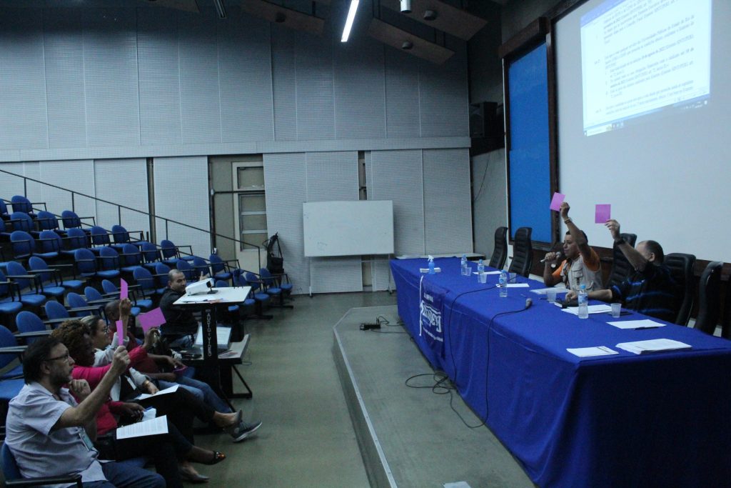 Em assembleia híbrida realizada nesta terça-feira (06/09), no Auditório 11, foi aprovada por unanimidade o Regulamento das eleições para a Diretoria Executiva do Sintuperj, quadriênio 2023-2026.