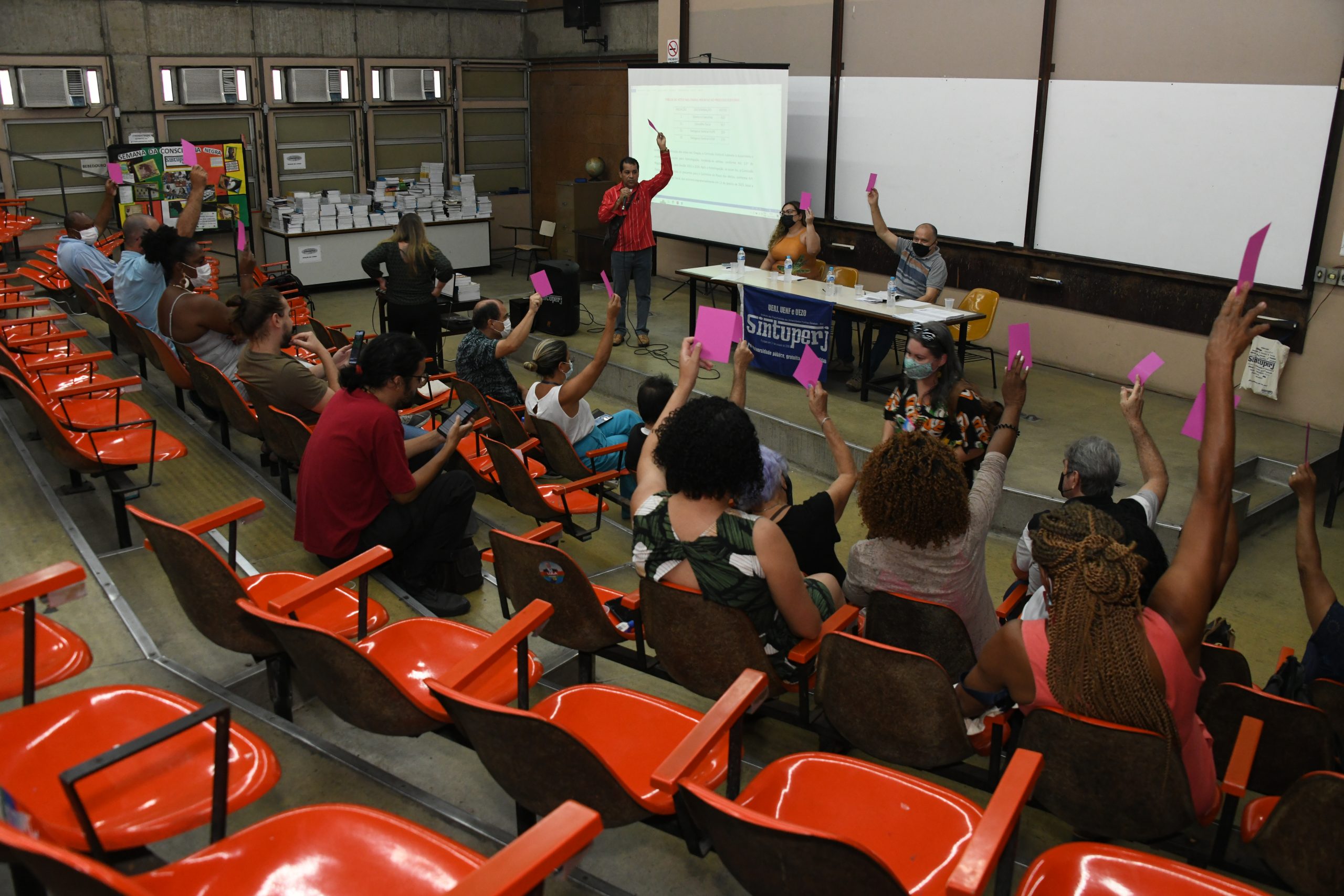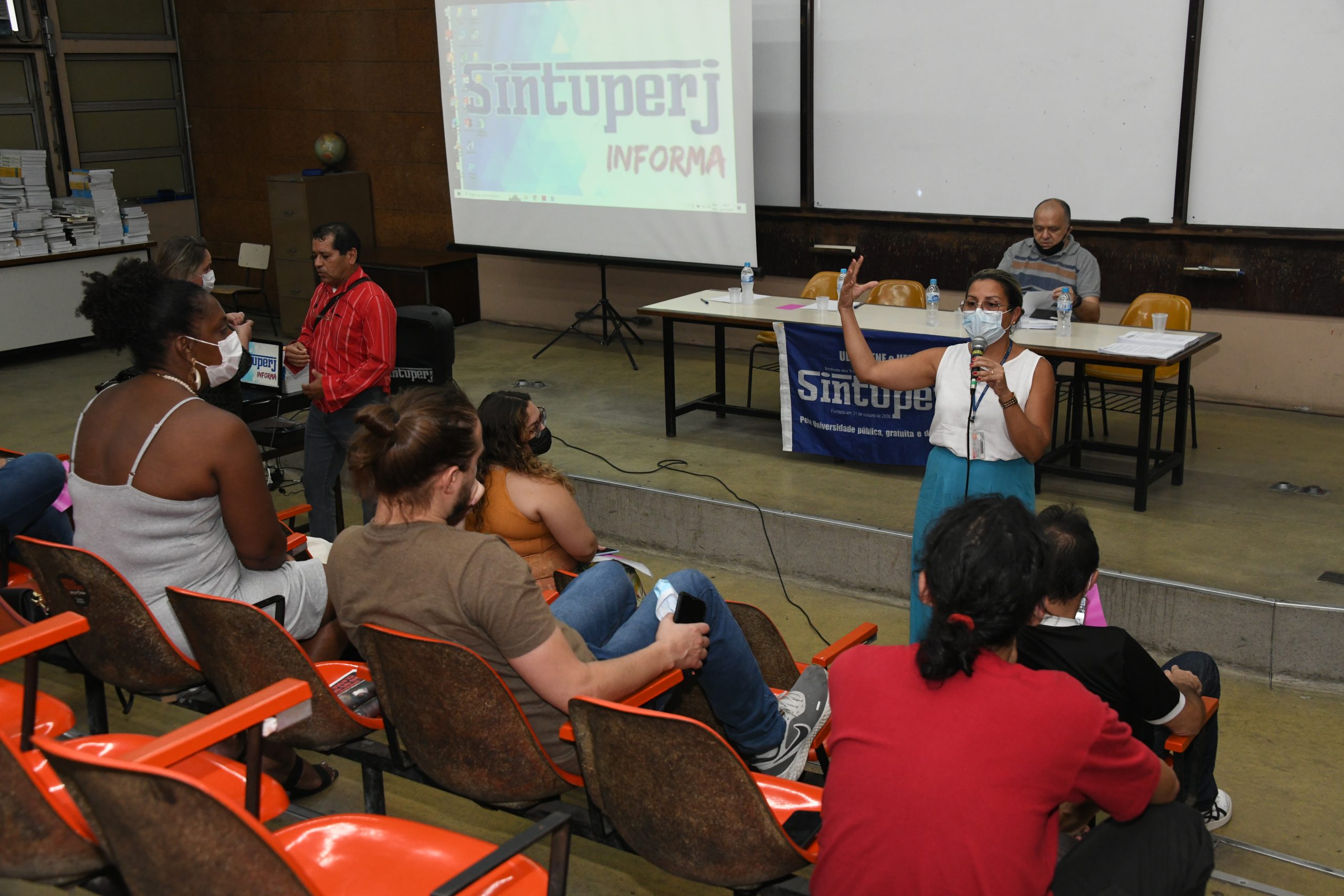 Após o encerramento da Assembleia, e atendendo a solicitações de servidores presentes à sessão, a coordenadora geral do Sintuperj Cassia Gonçalves abriu uma excepcionalidade regimental e esclareceu dúvidas a respeito do auxílio transporte. Este auxílio foi objeto do Ato Executivo de Decisão Administrativa (Aeda 121) publicado pela Reitoria no último dia 21 de novembro. Confira a matéria sobre o assunto feita pelo Sintuperj no link abaixo: