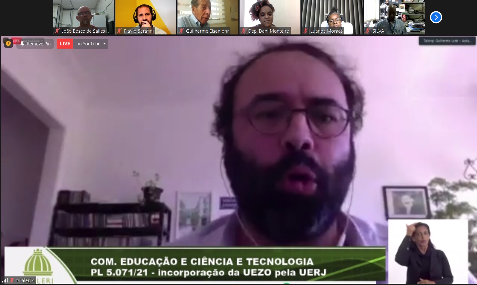 As Comissões de Educação e de Ciência e Tecnologia da Assembleia Legislativa do Rio de Janeiro (Alerj) realizaram nessa terça-feira (16/11) a primeira Audiência Pública sobre o Projeto de Lei (PL) 5071/2021, que promove a incorporação do Centro Universitário da Zona Oeste (Uezo) à Universidade do Estado do Rio de Janeiro (Uerj). Conduzida pelo presidente da comissão de Educação e deputado estadual Flávio Serafini (PSoL), a sessão ocorreu de forma virtual. Flávio defendeu que a incorporação seja feita com qualidade. Nesse sentido, ressaltou o trabalho feito no Legislativo a fim de aperfeiçoar o projeto, através de emendas, visando a garantir um plano de desenvolvimento estratégico e que não haja nenhuma forma de redução de direitos e/ou cursos existentes.
