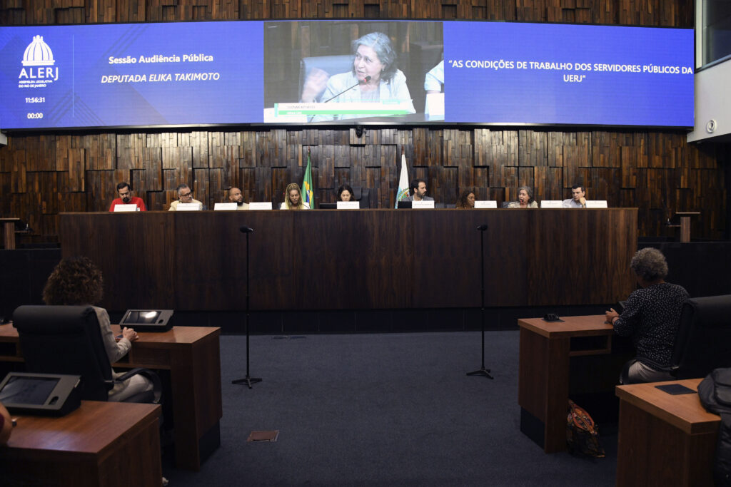 As Comissões de Ciência e Tecnologia; do Trabalho, Legislação Social e Seguridade Social; e de Servidores da Assembleia Legislativa, presididas respectivamente, pelos deputados Elika Takimoto, Dani Balbi e Flávio Serafini, realizaram uma Audiência Pública conjunta com o tema “As condições de trabalho dos servidores públicos da Uerj”, na última terça-feira (11/11).