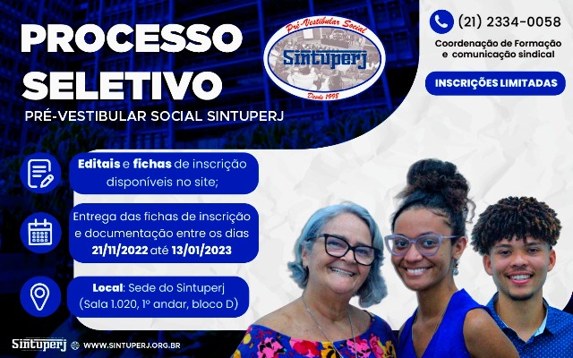Destaque Pré-Vestibular Social do Sintuperj abre processo de seleção para vagas do ano de 2023Diedro Barros2 de janeiro de 2023