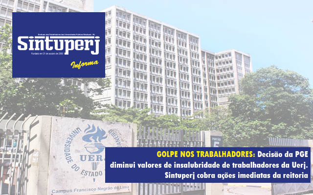 Destaque GOLPE NOS TRABALHADORES: Decisão da PGE diminui valores de insalubridade de trabalhadores da Uerj. Sintuperj cobra ações imediatas da reitoriaDiedro Barros1 de dezembro de 2022
