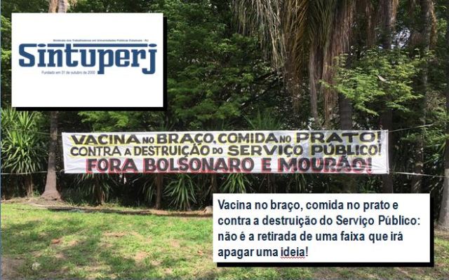 Destaque Vacina no braço, comida no prato e contra a destruição do Serviço Público: não é a retirada de uma faixa que irá apagar uma ideia!Diedro Barros20 de maio de 2021