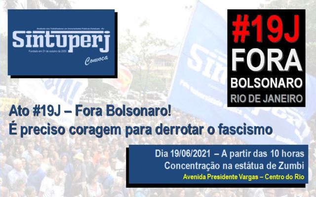 Destaque SINTUPERJ CONVOCA: Ato #19J – Fora, Bolsonaro! Dia 19/06, às 10hDiedro Barros17 de junho de 2021