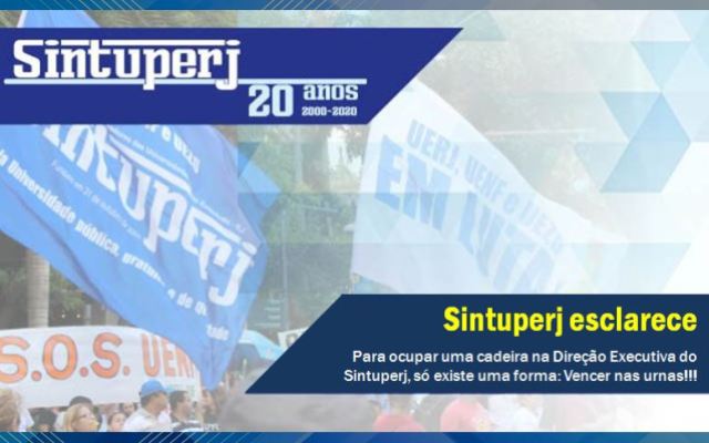 Destaque SINTUPERJ ESCLARECE: PARA OCUPAR UMA CADEIRA NA DIREÇÃO EXECUTIVA DO SINTUPERJ SÓ EXISTE UMA FORMA: VENCER NAS URNAS!!!!Diedro Barros10 de setembro de 2020