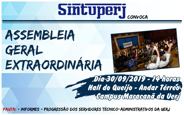 Destaque SINTUPERJ CONVOCA: Assembleia Geral Extraordinária na Uerj. Dia 30/09, às 14hDiedro Barros23 de setembro de 2019
