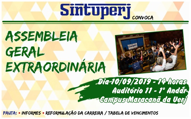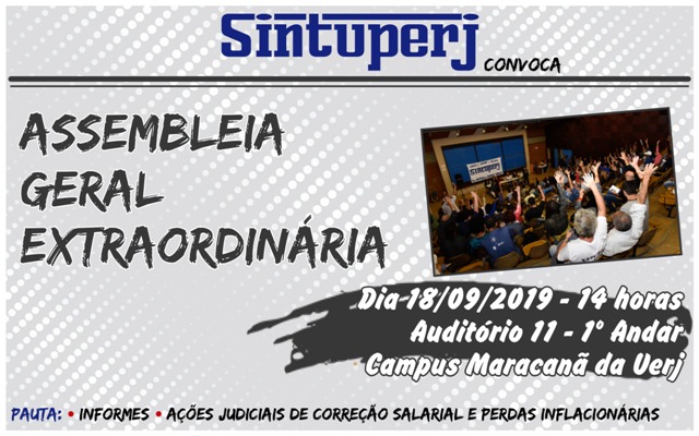 Destaque SINTUPERJ CONVOCA: Assembleia Geral Extraordinária na Uerj. Dia 18/09, às 14hDiedro Barros16 de setembro de 2019