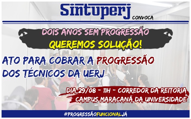 Destaque SINTUPERJ CONVOCA: Ato para cobrar a Progressão dos técnicos da Uerj. Dia 29/08, às 11hDiedro Barros22 de agosto de 2019