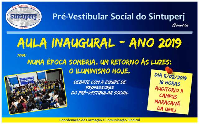 Destaque Pré-Vestibular Social do Sintuperj inicia atividades de 2019 com Aula InauguralDiedro Barros4 de fevereiro de 2019