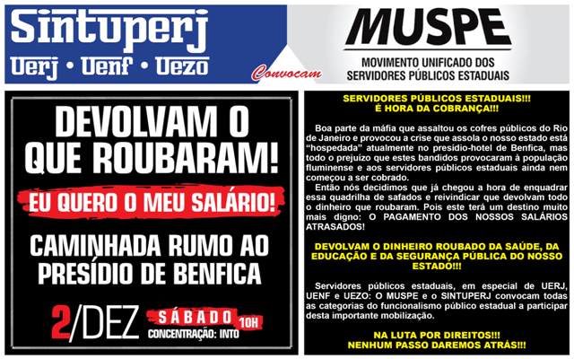 Destaque Sintuperj e Muspe convocam: Ato “Devolva o que roubaram! Eu quero o meu salário”Diedro Barros30 de novembro de 2017