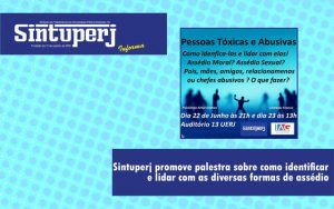 Nos dias 22 e 23 de junho, o Sintuperj e o Instituto Artur Gomes realizam uma palestra sobre as diversas formas de assédio. O objetivo é contribuir para a sua identificação e a aprendizagem de como lidar com tais situações.…