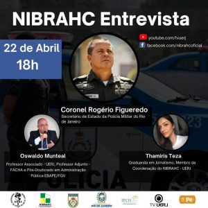 O Núcleo de Identidade Brasileira e História Contemporânea (NIBRAHC), entrevista o secretário da Polícia Militar fluminense, coronel Rogério Figueiredo. Será na próxima quinta-feira (22/04), às 18h. Representando o Nibrahc, estarão o professor da Uerj Oswaldo Munteal e a estudante de…