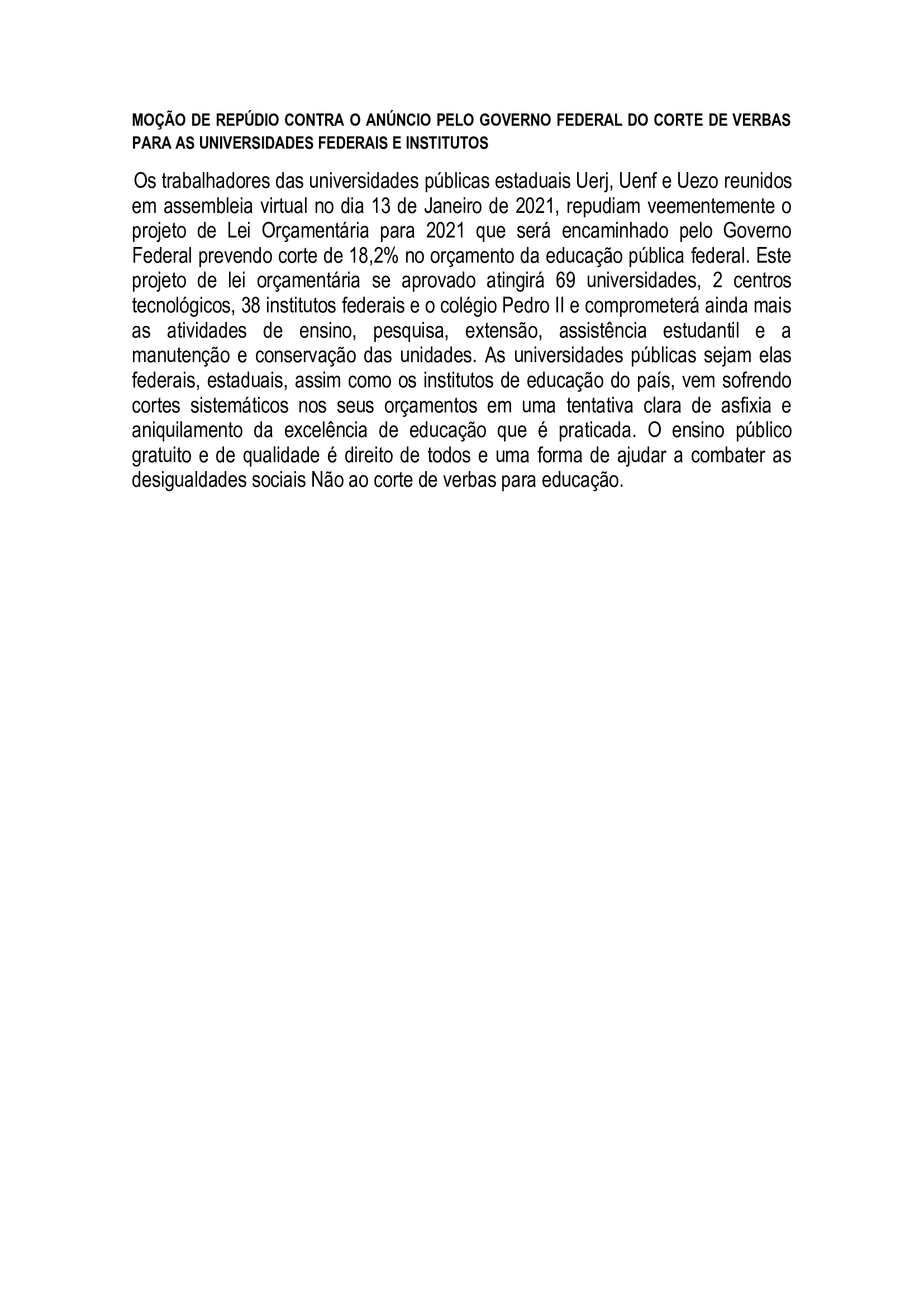 Moção de repúdio contra corte de verbas em universidades e institutos federais