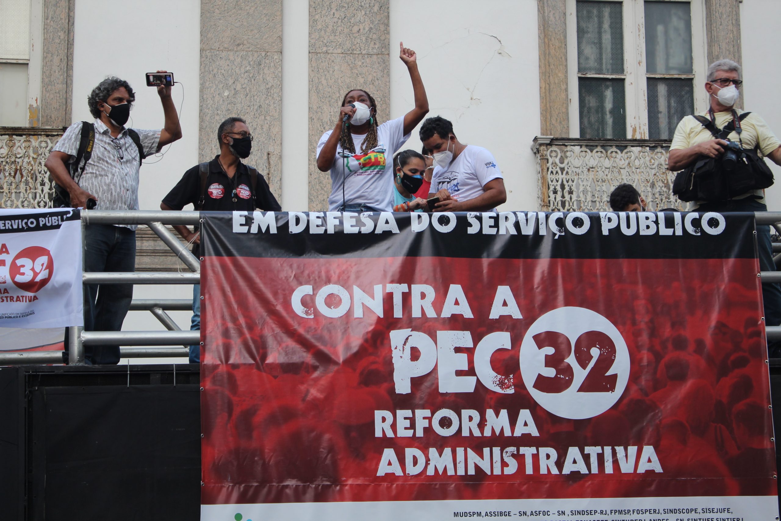 Os trabalhadores de todo o país foram às ruas nessa quarta-feira (18/08) em protesto à Proposta de Emenda Constitucional 32 (PEC 32), que prevê a reforma administrativa do serviço público. Em tramitação no Congresso Nacional, a PEC extingue o Regime Jurídico Único (RJU), cria novas possibilidades de exoneração e flexibiliza a estabilidade.