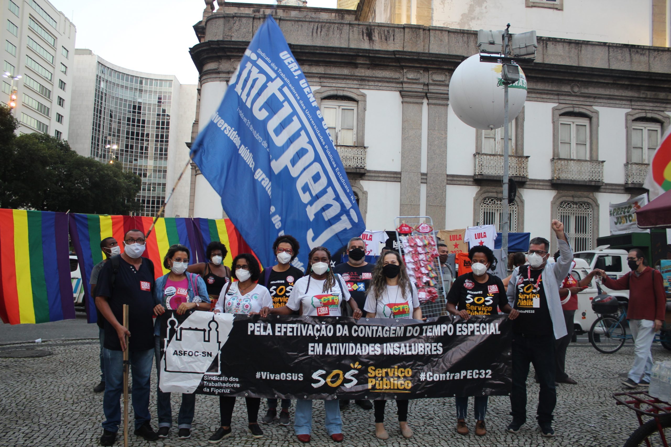 Pelo Sintuperj, participaram ainda da manifestação a coordenadora geral Cassia Gonçalves e a coordenadora de Saúde e Segurança do Trabalhador, Simone Damasceno.