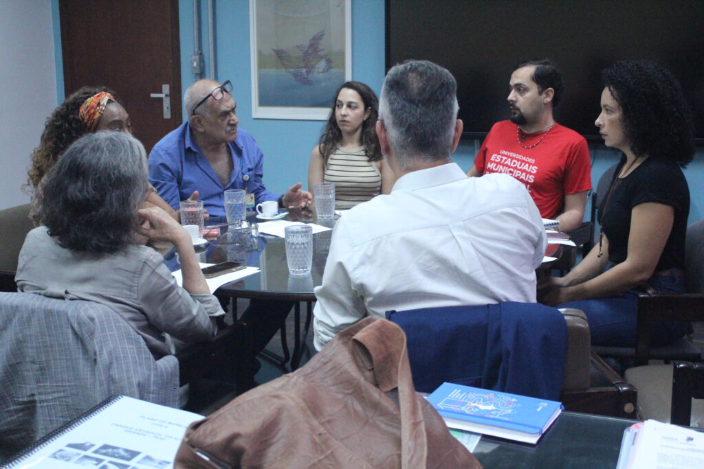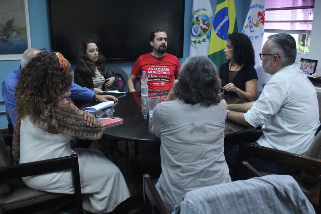 Sintuperj e Asduerj estiveram na Reitoria da Uerj na tarde desta quinta-feira (06/11) para debater com a reitora da universidade, Gulnar Azevedo, e o vice-reitor, Bruno Deusdará, possibilidades para que os servidores empossados sem direito aos triênios, suprimidos pela Lei Complementar 194, de 2021, possam reavê-los.
