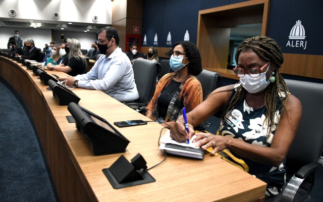 A primeira das três audiências públicas, promovida na tarde de terça-feira, 14/09, teve a condução do presidente da Comissão de Constituição e Justiça, deputado estadual Marcos Pacheco (PSC). Estiveram presentes pela administração pública estadual Secretário estadual de Fazenda, Nelson Rocha; o presidente do Rioprevidência, Sérgio Aureliano; e o defensor público estadual do estado do Rio de Janeiro, Rodrigo Pacheco. Pelo Sintuperj, participaram a coordenadora geral Regina de Fátima de Souza e a coordenadora de Saúde e Segurança do Trabalhador, Simone Menezes Damasceno.