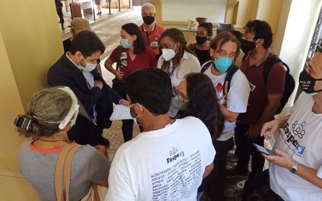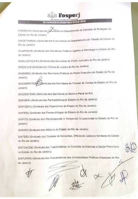 Após a entrega do documento, os representantes das entidades que compõem o Fosperj fizeram um vídeo falando sobre a atividade e a necessidade de lutar para garantir os direitos dos servidores públicos estaduais.