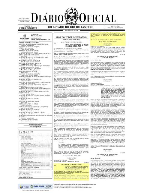 A Lei sancionada pelo governador Wilson Witzel foi publicada na edição do Diário Oficial do Estado da última terça-feira, dia 14/04.