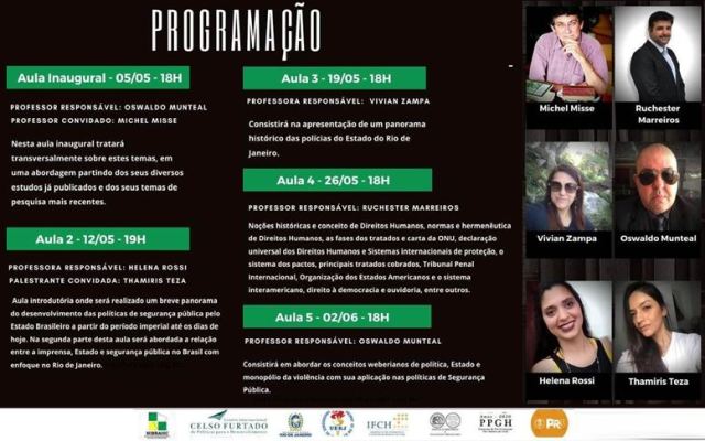 Confira o cronograma completo do curso de extensão “História e gestão da segurança pública no Rio de Janeiro”: