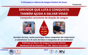 Na semana em que o Sintuperj comemora seus 25 anos de fundação, o Sindicato traz uma das principais bandeiras de luta para os servidores da Uerj: a solidariedade. Em parceria com o Banco de Sangue Herbert de Souza, do Hospital…