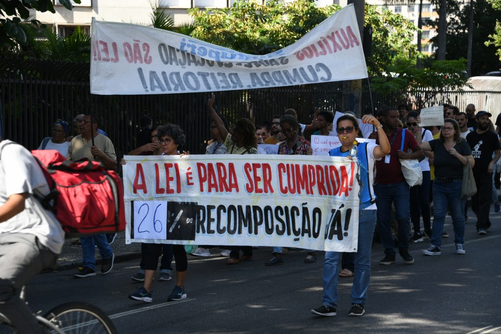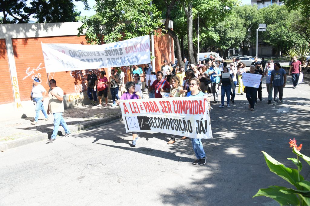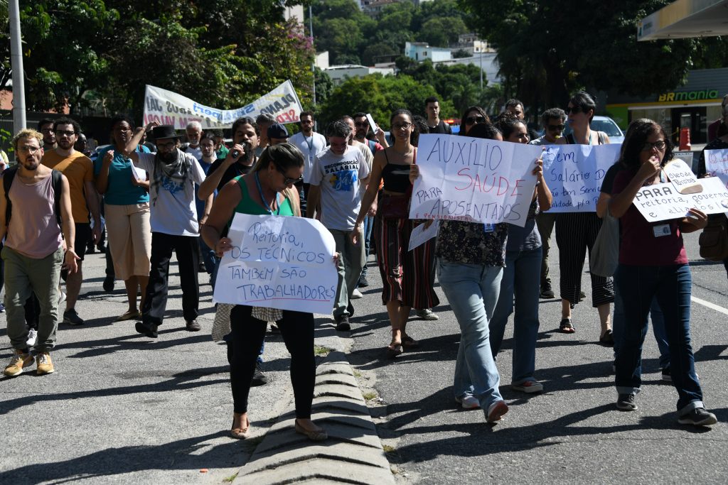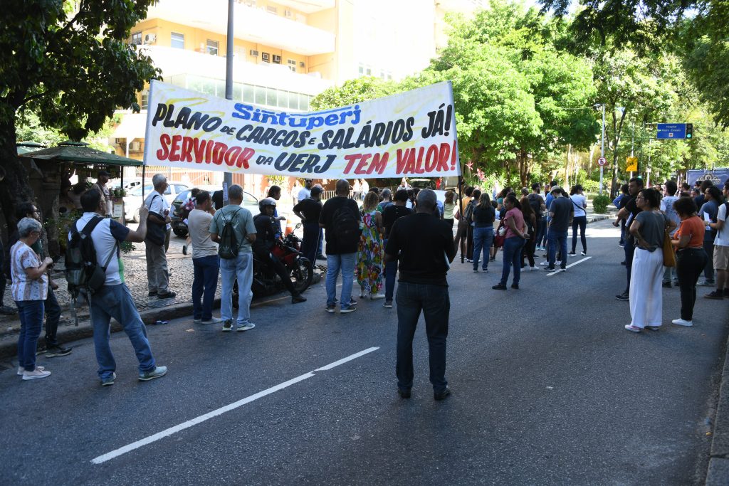 Durante a caminhada, os servidores promoveram um apitaço e listaram uma série de direitos não cumpridos tanto pelo Governo, como a reformulação do plano de carreira dos técnicos e a recomposição salarial dos servidores estaduais vinculados ao Poder Executivo, quanto pela Reitoria da Uerj, como a continuidade do pagamento dos auxílios saúde e educação.