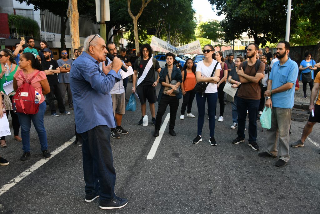Após concentração no hall do queijo, os manifestantes caminharam pela Rua São Francisco Xavier e contornaram o campus Maracanã da universidade.