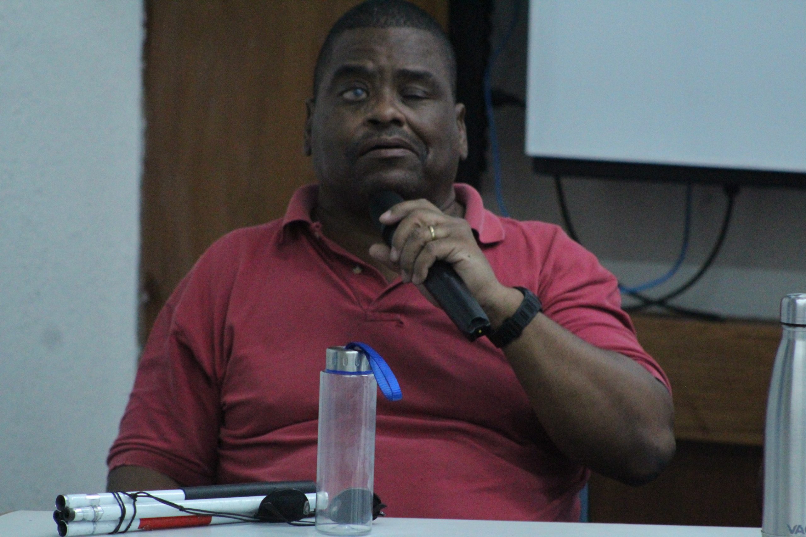Por fim, os presentes ouviram o relato de Flávio Gomes, ex-aluno do Pré-Vestibular, o primeiro com deficiência visual total, aprovado para o curso de Direito da Uerj. Flávio fez um agradecimento especial ao Sintuperj pela grande ajuda ofertada na sua caminhada rumo ao ensino superior. Ele ressaltou a sua grande felicidade em estar estudando e estagiando na universidade, e afirmou ter o sonho de se tornar servidor da universidade. Destacou ainda que incentiva outras pessoas com deficiência que querem prosseguir nos estudos a procurarem o Sintuperj, onde, de acordo com ele, há uma família para dar todo o suporte e acolhimento.