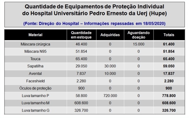 Sintuperj – Os equipamentos de proteção e insumos que o Hupe tem em estoque garantem o atendimento da unidade até quando?
