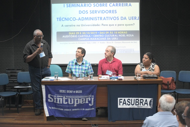 Teve início na manhã desta quarta-feira, 30/10, o segundo dia de atividades do 1º Seminário sobre Carreira dos Servidores Técnico-Administrativos da Uerj. Conforme a programação divulgada, a manhã deste dia contou com uma mesa de debate que abordou o tema “Carreira dos técnicos – Desafios e novas perspectivas”.