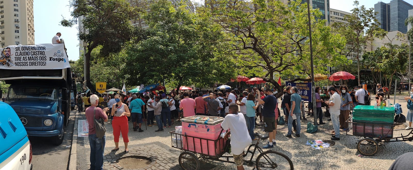 Aos transeuntes do entorno da Praça Mario Lago, onde se concentravam os trabalhadores, as intervenções também lembravam que sistematicamente o conjunto da classe trabalhadora é quem paga a conta pelos desmandos administrativos praticados pelos diversos governos que se sucederam nos últimos anos no estado do Rio de Janeiro. E destacaram que o pacote de medidas enviado por Cláudio Castro é o maior ataque ao servidor público já realizado.