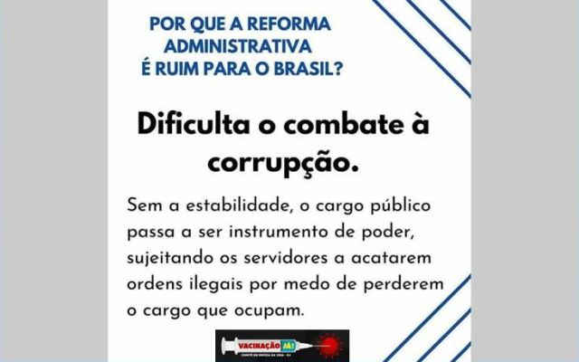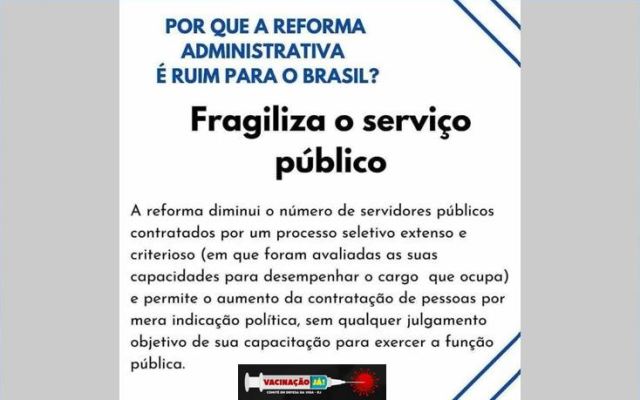Defenda seu país! Defenda a manutenção e a melhoria dos serviços que são necessários para você, cidadão! Se posicione contra a Reforma Administrativa e pressione os políticos para que seus direitos sejam mantidos e respeitados!