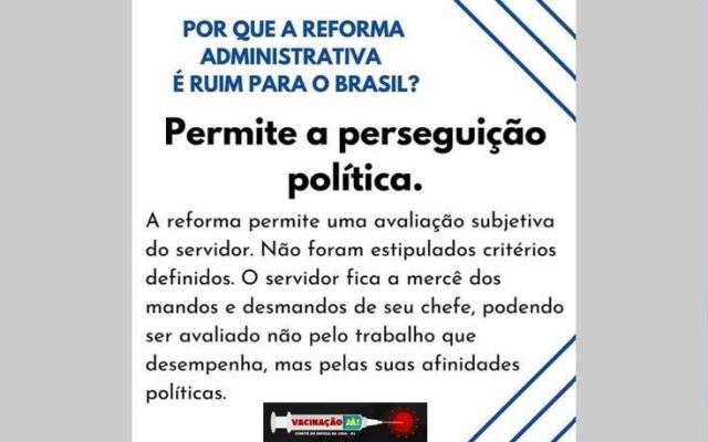 A reforma permite uma avaliação subjetiva do servidor. Não foram estipulados critérios definidos. O servidor fica a mercê dos mandos e desmandos de seu chefe, podendo ser avaliado não pelo trabalho que desempenha, mas pelas suas afinidades políticas.
