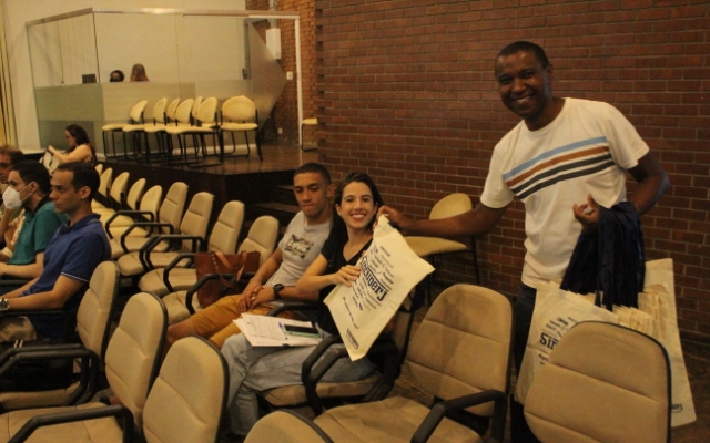 A coordenadora geral do Sintuperj, ao final de sua fala, apresentou os serviços oferecidos pelo Sindicato, como o atendimento jurídico e o Pré-Vestibular Social, e abordou as conquistas obtidas e as lutas que estão sendo travadas. Regina ressaltou que o Sintuperj e sua Diretoria Executiva são marcados pela atuação ativa e contínua pela garantia de direitos e em busca de novas conquistas. Como é de praxe nos eventos do Ambiente-se, a equipe do Sintuperj mais uma vez distribuiu aos novos servidores um brinde no qual estão incluídos uma cartilha com todas as informações sobre a entidade, suas lutas e conquistas, e também a ficha de filiação para incentivar os novos servidores a se juntarem nessa luta. Regina Souza reforçou aos novos trabalhadores da instituição que a equipe do sindicato está à disposição para todos os esclarecimentos relativos aos serviços oferecidos pela entidade.
