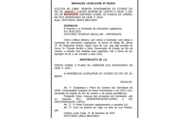 Um dos gabinetes visitados pela comitiva do Sintuperj foi o da deputada Carla Machado (PT). Neste os representantes do sindicato fizeram um agradecimento pela iniciativa da parlamentar que encaminhou uma mensagem ao Executivo estadual solicitando que o governador Claudio Castro envie à Alerj mensagens de lei dispondo sobre o Plano de Cargos, Carreiras e Salários (PCCS) da Uerj e o Plano de Cargos de Vencimentos da Uenf (PCV) para apreciação dos deputados da casa. Também foi ressaltada a importância do trabalho de mediação que a parlamentar se propôs a realizar junto ao vice-presidente nacional do PT, Washington Quaquá, que tem trânsito junto ao Governo Federal e pode auxiliar na resolução da questão referente aos auxílios de natureza indenizatória dos servidores de Uerj e Uenf, que estão travados no Conselho do Regime de Recuperação Fiscal, em Brasília (COMISSARF).