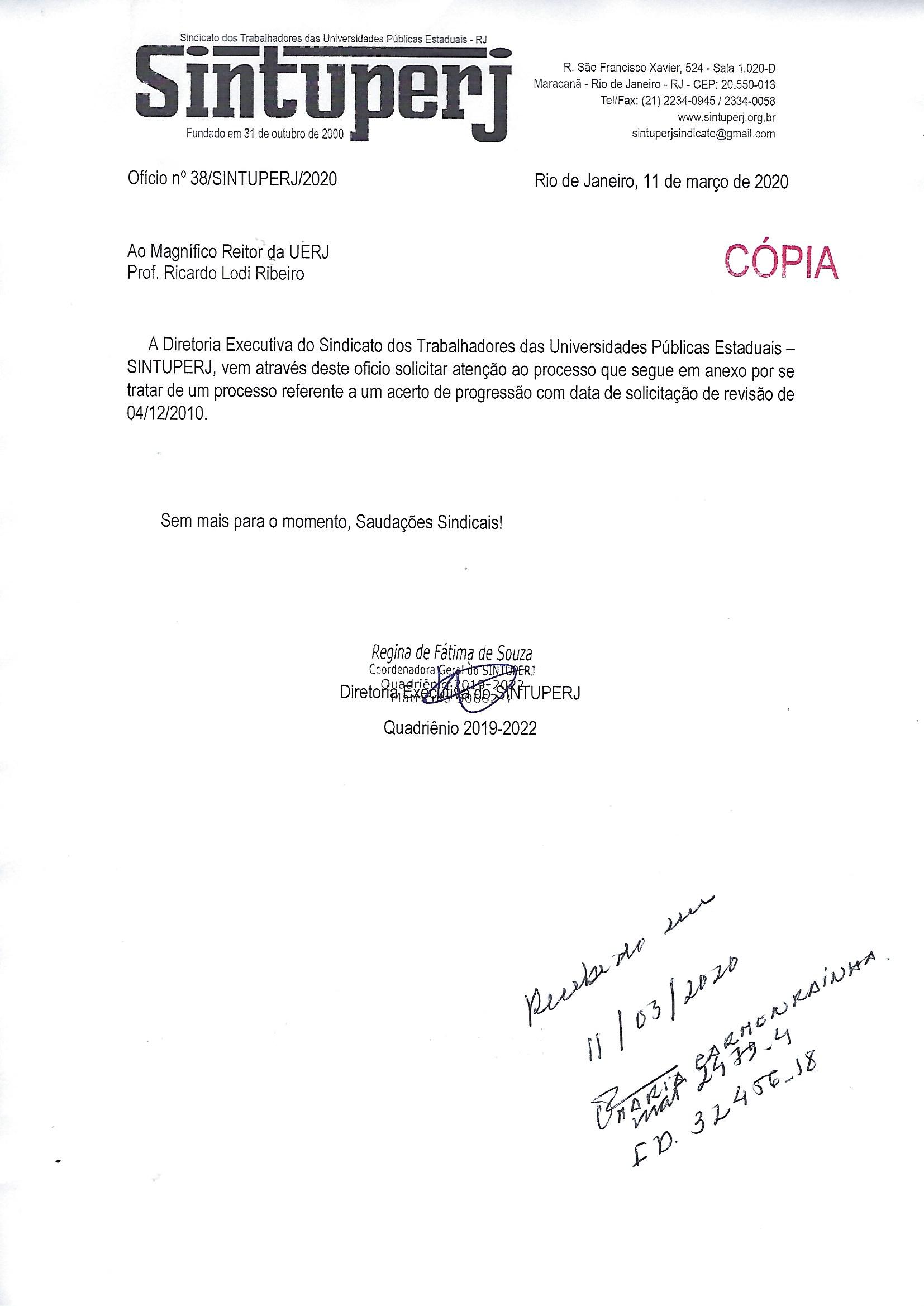 A Diretoria Executiva do Sintuperj solicitou oficialmente que a Reitoria adote medidas para a tramitação do processo 12504/2010, com data de solicitação em 04/12/2010. Nele, são requeridas correções quanto às progressões de 21 servidores técnico-administrativos. A reivindicação foi reconhecida na época pela Superintendência de Recursos Humanos (SRH), atual SGP (Superintendência de Gestão de Pessoas).